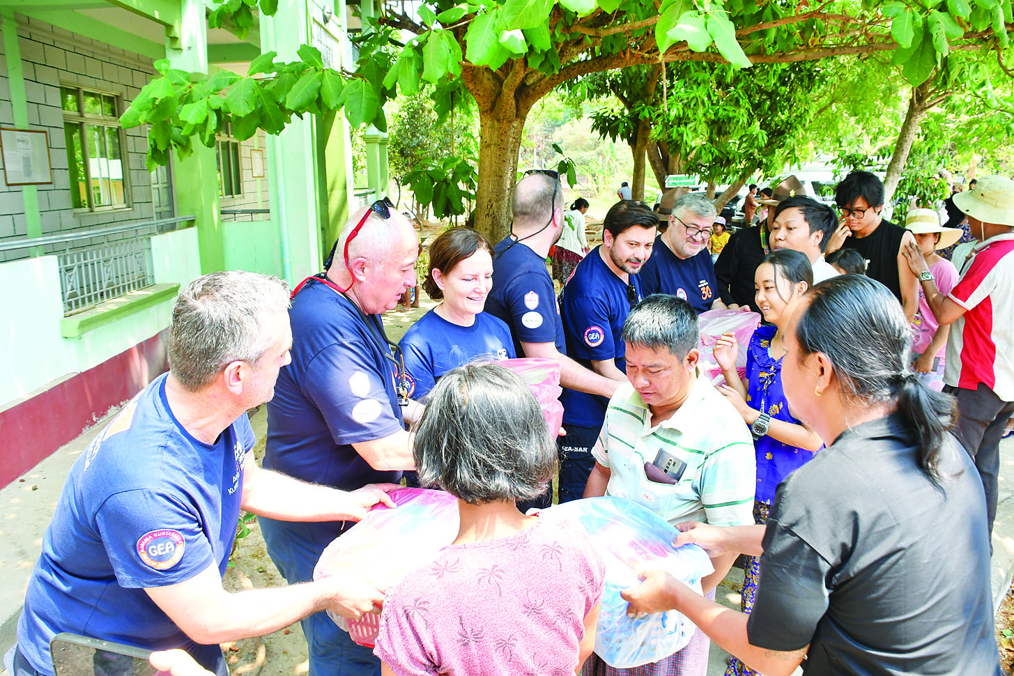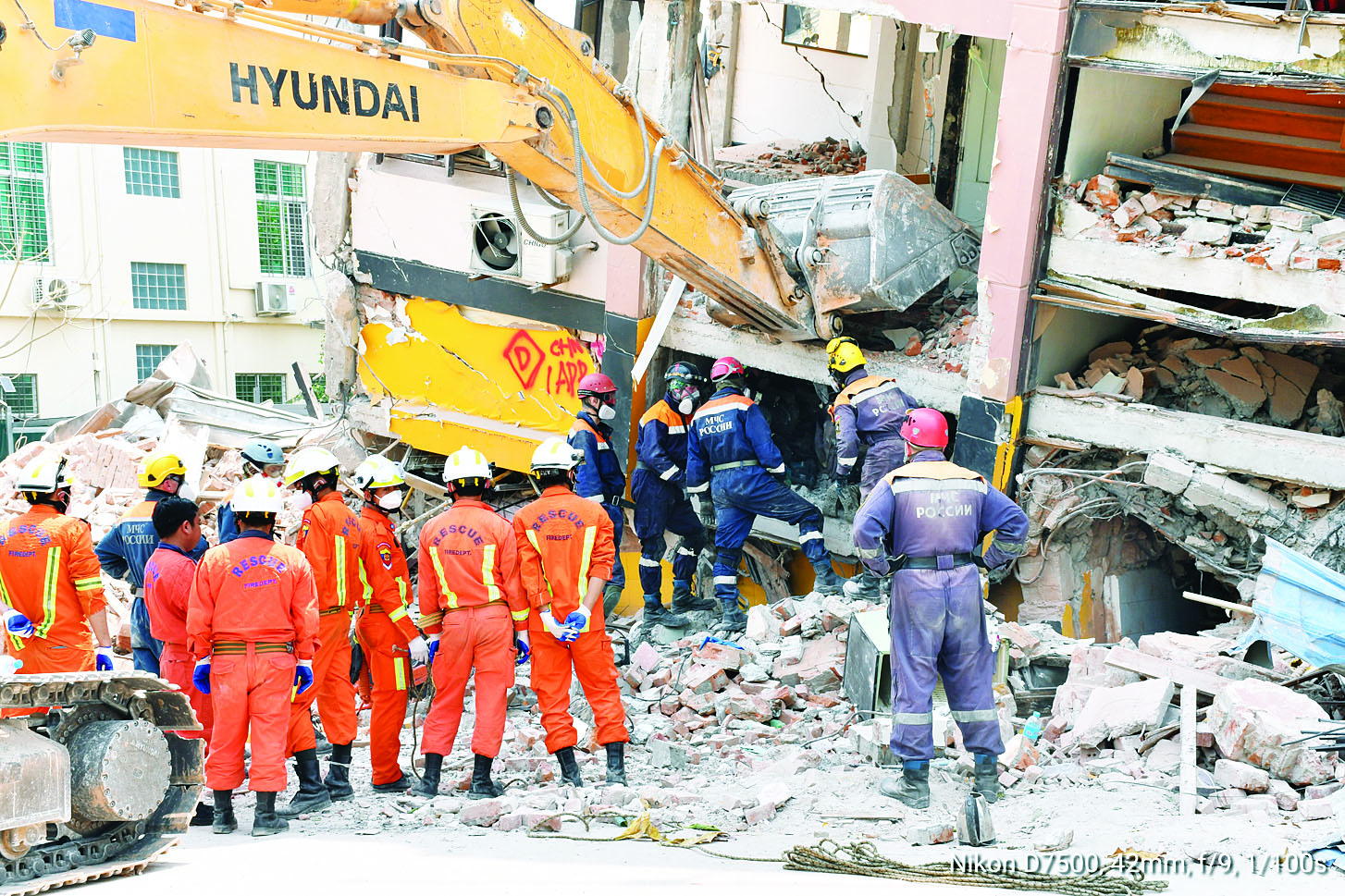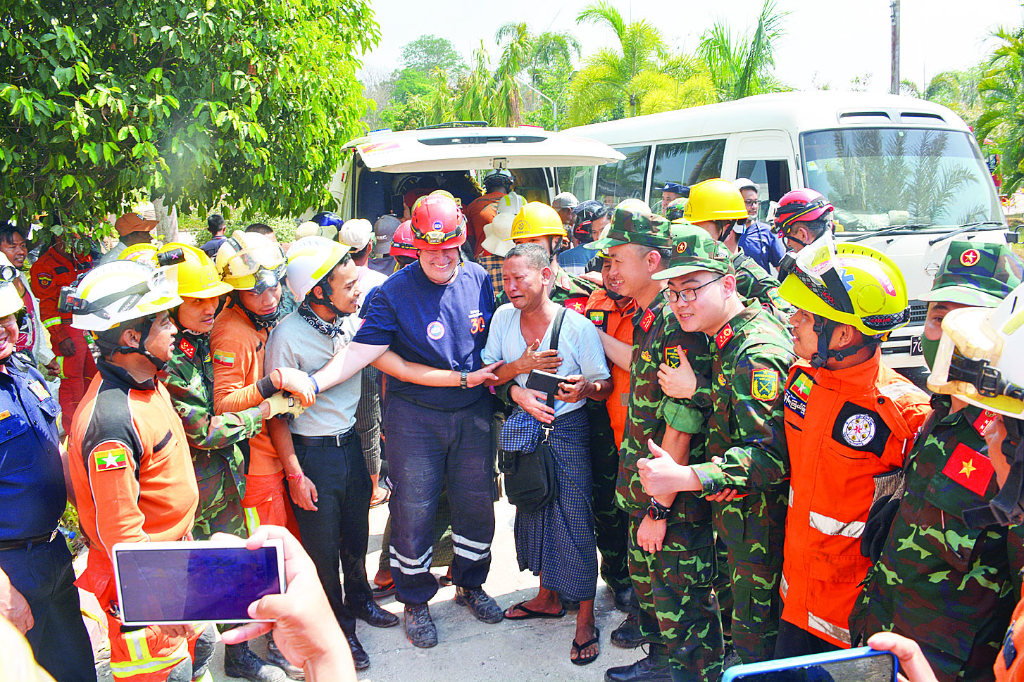 မြန်မာနိုင်ငံအတွင်းရှိ ငလျင်ဘေးဒဏ်သင့်ဒေသများသို့ ကူညီကယ်ဆယ်ရေးလုပ်ငန်းများ ဆောင်ရွက်ပေးရန်အတွက် ရုရှား၊ တရုတ်၊ အိန္ဒိယ၊ ထိုင်း၊ စင်ကာပူ၊ မလေးရှား၊ ဘင်္ဂလား ဒေ့ရှ်၊ ဗီယက်နမ်၊ ယူအေအီး၊ လာအို၊ ဘယ်လာရုစ်၊ အင်ဒိုနီးရှား၊ ဘူတန်၊ ဖိလစ်ပိုင်၊ ဂျပန်၊ နီပေါ၊ ပါကစ္စတန်၊ တူကီယဲ၊ အမေရိကန်၊ သီရိလင်္ကာ၊ ဩစတြေးလျ၊ အဇာဘိုင်ဂျန်၊ ဘရူနိုင်း၊ တောင်ကိုရီးယား၊ ဂျာမနီနှင့် ကမ္ဘောဒီးယားစသည့် နိုင်ငံပေါင်း ၂၆ နိုင်ငံတို့မှ လူသားချင်းစာနာထောက်ထားမှု အကူ အညီပစ္စည်းများ ထောက်ပံ့ပေးခြင်း၊ ရှာဖွေကယ်ဆယ်ရေးလုပ်ငန်းများ ဆောင်ရွက်ရန်အတွက် ရုရှား၊ တရုတ်၊ အိန္ဒိယ၊ ထိုင်း၊ စင်ကာပူ၊ မလေးရှား၊ ဘင်္ဂလားဒေ့ရှ်၊ ဗီယက်နမ်၊ ယူအေအီး၊ ဘယ်လာရုစ်၊ အင်ဒိုနီးရှား၊ ဖိလစ်ပိုင်နှင့် တူကီယဲစသည့် နိုင်ငံ ၁၃ နိုင်ငံတို့မှ ဆေးအကာအကွယ်အဖွဲ့များ ပူးတွဲပါဝင်သည့် ရှာဖွေကယ်ဆယ်ရေးအဖွဲ့ ၁၆ ဖွဲ့ လူဦးရေ ၁၀၇၀ နှင့် ရှာဖွေကယ်ဆယ်ရေး ခွေး ၃၈ ကောင်တို့ဖြင့် ပြည်တွင်းရှိ အဖွဲ့အစည်းများနှင့် ပူးပေါင်းကာ မြေပြင်ကွင်းဆင်း၍ ငလျင်ဒဏ်ကြောင့် ပြိုကျပျက်စီးခဲ့သည့် အဆောက်အဦများအတွင်းသို့ ရောက်ရှိပိတ်မိနေကြသည့် ပြည်သူများအား နိုင်ငံအလိုက် ရှာဖွေကယ်ဆယ်ရေးလုပ်ငန်းများကို သက်စွန့်ကြိုးပမ်းဆောင်ရွက်ခဲ့ကြပြီး ကယ်ဆယ်ရှာဖွေတွေ့ရှိခဲ့သည့် လူနာများအား လိုအပ်သည့် ကျန်းမာရေးစောင့်ရှောက်မှုလုပ်ငန်းများကိုလည်း ကယ်ဆယ်သည့်နေရာတွင်ပင် အမြန်ဆုံးဆောင်ရွက်ပေးနိုင်ခဲ့ပါသည်။