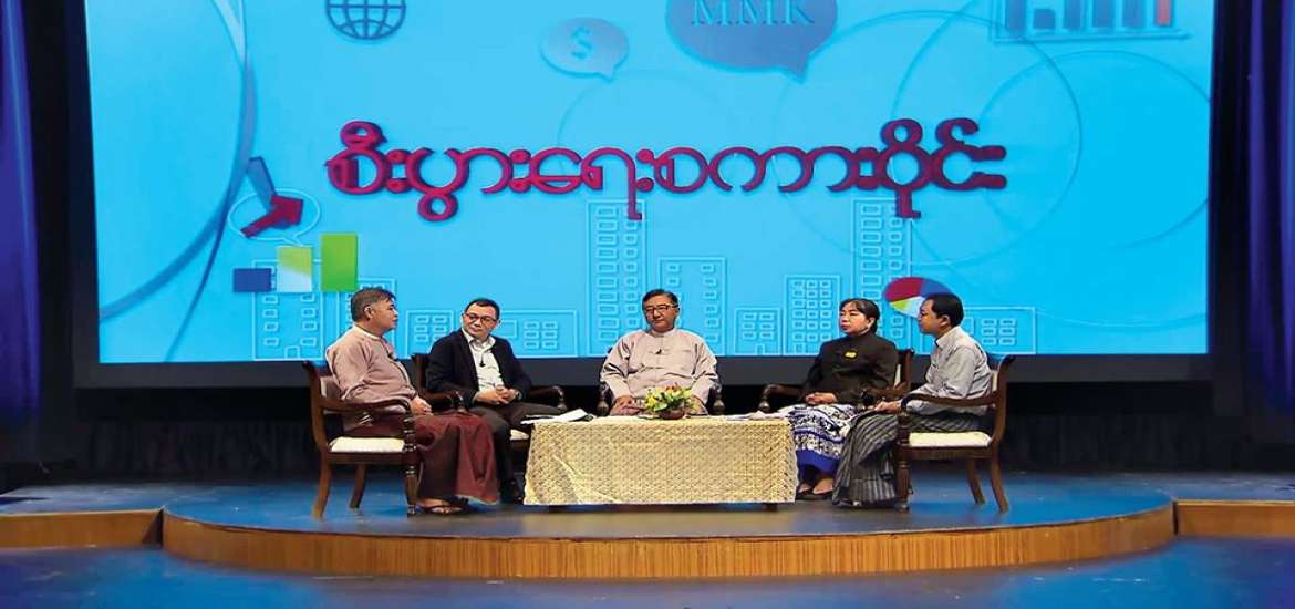 စီးပွားရေးဝန်းကျင်ကောင်းကို ဖန်တီးခြင်းစကားဝိုင်းကို မြန်မာ့အသံနှင့် ရုပ်မြင်သံကြားမှ ရိုက်ကူးထုတ်လွှင့်ခဲ့သည်။ အဆိုပါ စကားဝိုင်း ဆွေးနွေးပွဲတွင် မြန်မာ့အသံနှင့် ရုပ်မြင်သံကြားမှ ဦးသူရိန်လွင်က အစီအစဉ်မှူးအဖြစ်ဆောင်ရွက်ပြီး စီးပွားရေးနှင့် ကူးသန်းရောင်းဝယ်ရေးဝန်ကြီးဌာန အမြဲတမ်းအတွင်းဝန်၊ မြန်မာကုန်သွယ်မှုမြှင့်တင်ရေးအဖွဲ့ ညွှန်ကြားရေးမှူးချုပ် ဦးအောင်စိုး (စီးပွားရေးလုပ်ငန်းလုပ်ကိုင်ရလွယ်ကူမှုအထောက်အကူပြုအဖွဲ့၊ အတွင်းရေးမှူး)၊ စိုက်ပျိုးရေး၊ မွေးမြူရေးနှင့် ဆည်မြောင်း ဝန်ကြီးဌာန လယ်ယာမြေ စီမံခန့်ခွဲရေးနှင့် စာရင်းအင်းဦးစီးဌာန ညွှန်ကြားရေးမှူး ဦးကျော်ငြိမ်းအောင် (ပိုင်ဆိုင်မှုမှတ်ပုံတင်ခြင်း အညွှန်းကိန်းဆိုင်ရာ အထောက်အကူပြုအဖွဲ့၊ အတွင်းရေးမှူး)၊ ပြည်ထောင်စုတရားလွှတ်တော်ချုပ် ပြည်ထောင်စုတရားစီရင်ရေး ကြီးကြပ်မှုရုံး ဥပဒေလုပ်ထုံးလုပ်နည်းဌာန ညွှန်ကြားရေးမှူး ဒေါ်ထားထား (ပဋိညာဉ်များ အတည်ပြုဆောင်ရွက်ခြင်း အညွှန်းကိန်းဆိုင်ရာ အထောက်အကူပြုအဖွဲ့၊ အတွင်းရေးမှူး)နှင့် Zeya & Associate Co.,Ltd. Chairman/CEO ဦးဇေယျသူရမွန်(ပုဂ္ဂလိကကဏ္ဍကိုယ်စားလှယ်)တို့က ပါဝင်ဆွေးနွေးခဲ့သည်။