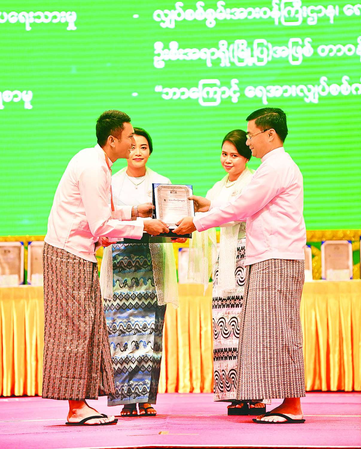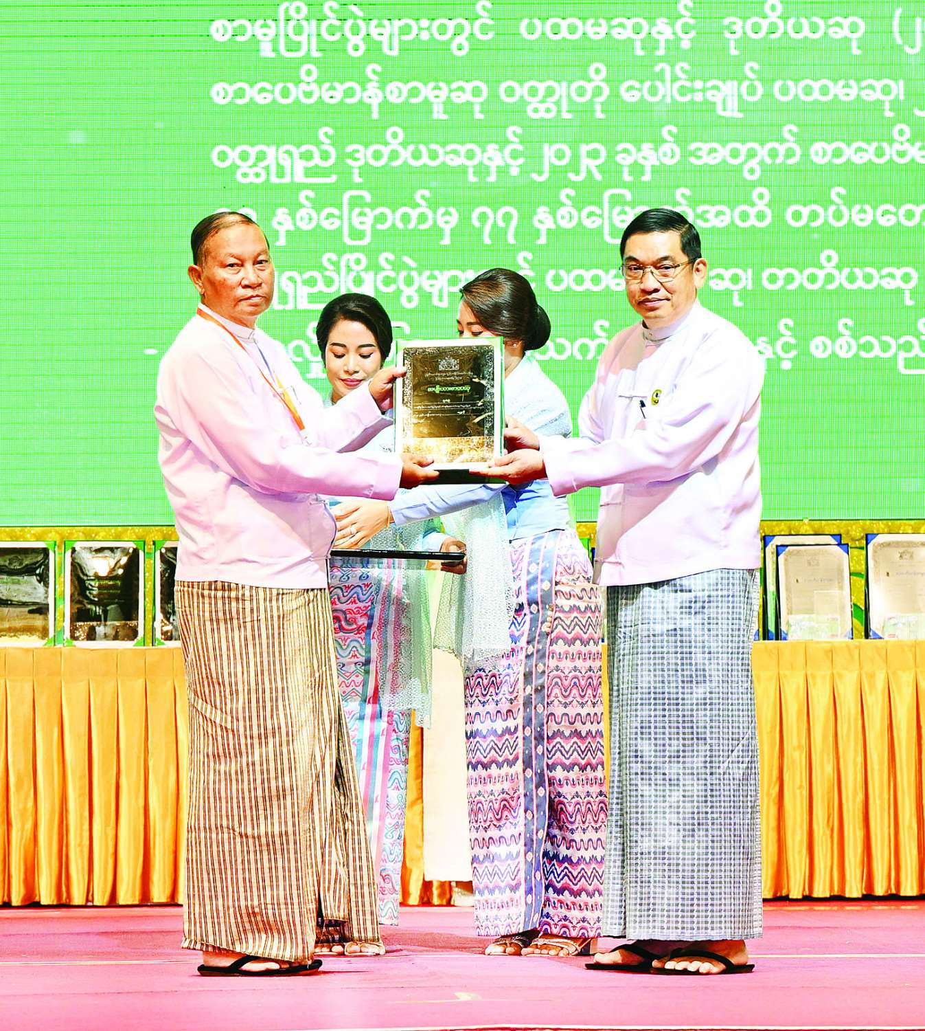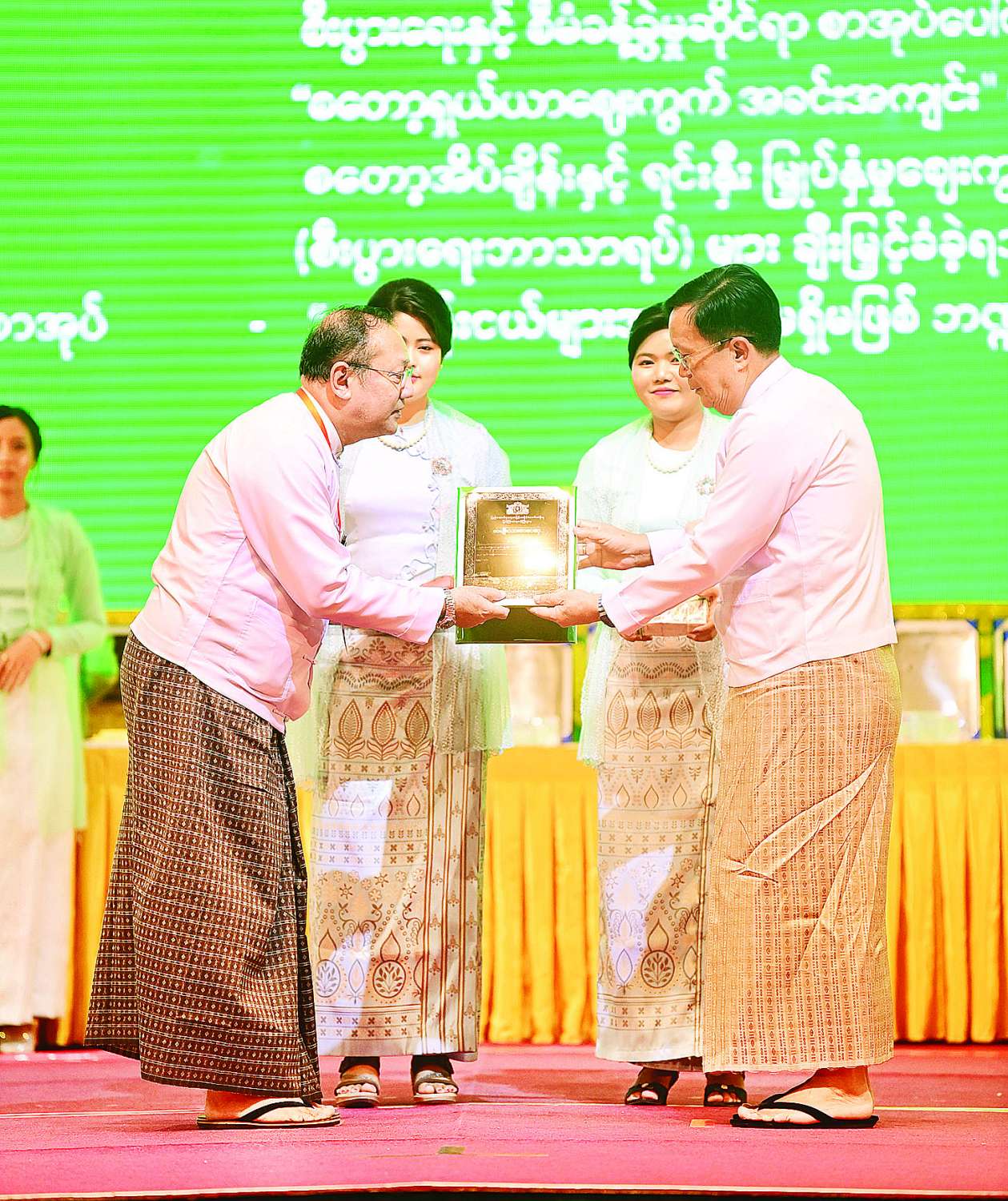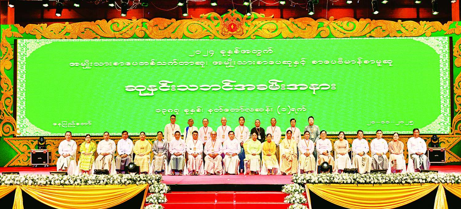 ၂၀၂၄ ခုနှစ်အတွက် အမျိုးသားစာပေတစ်သက်တာဆု၊ အမျိုးသားစာပေဆုနှင့် စာပေဗိမာန်စာမူဆု ဆုနှင်းသဘင်အခမ်းအနားကျင်းပ ပြည်ထောင်စုသမ္မတမြန်မာနိုင်ငံတော် ယာယီသမ္မတ နိုင်ငံတော်လုံခြုံရေးနှင့်အေးချမ်းသာယာရေးကော်မရှင်ဥက္ကဋ္ဌ ဗိုလ်ချုပ်မှူးကြီး မင်းအောင်လှိုင်နှင့်ဇနီး ဒေါ်ကြူကြူလှ တက်ရောက်ချီးမြှင့်ပေးအပ်