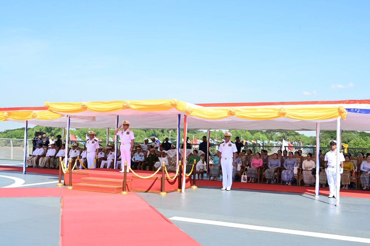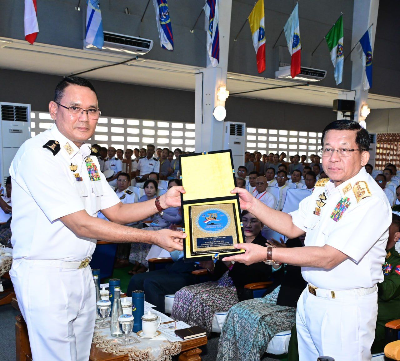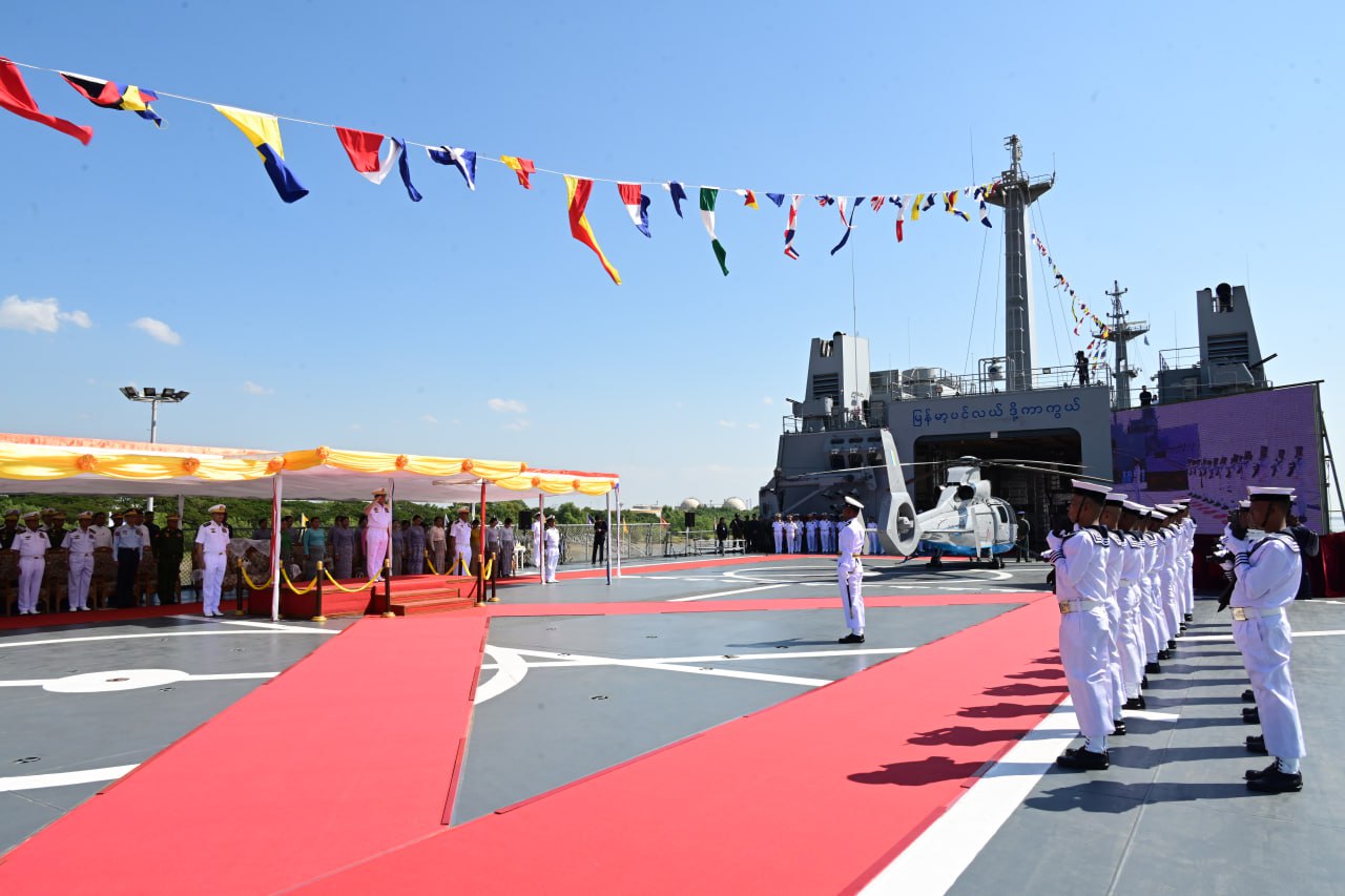 နိုင်ငံတော်လုံခြုံရေးနှင့် အေးချမ်းသာယာရေးကော်မရှင်ဥက္ကဋ္ဌ တပ်မတော်ကာကွယ်ရေးဦးစီးချုပ် ဗိုလ်ချုပ်မှူးကြီး မင်းအောင်လှိုင် တပ်မတော် (ရေ) ဖွဲ့စည်းတည်ထောင်မှု (၇၈) နှစ်မြောက် နှစ်ပတ်လည်နေ့ အခမ်းအနားသို့ တက်ရောက်ချီးမြှင့်