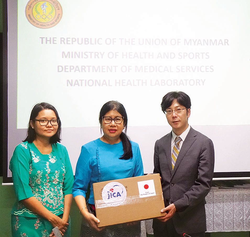 မြန်မာနိုင်ငံတွင် ကိုရိုနာဗိုင်းရပ်စ် စစ်ဆေးမှုများကို အမြန်ဆုံး ဆောင်ရွက်နိုင်ရေးအတွက် ဂျပန်ယန်း လေးသိန်းတန်ဖိုးရှိ လိုအပ် သော ဓာတ်ခွဲပစ္စည်းများအား ဂျပန် အပြည်ပြည်ဆိုင်ရာ ပူးပေါင်း ဆောင်ရွက်ရေးအေဂျင်စီ (JICA) မှအမျိုးသားကျန်းမာရေး ဓာတ်ခွဲခန်း (NHL) သို့ ဖေဖော်ဝါရီ ၂၁ ရက်က လွှဲပြောင်းပေးအပ်ခဲ့ကြောင်း သိရ သည်။