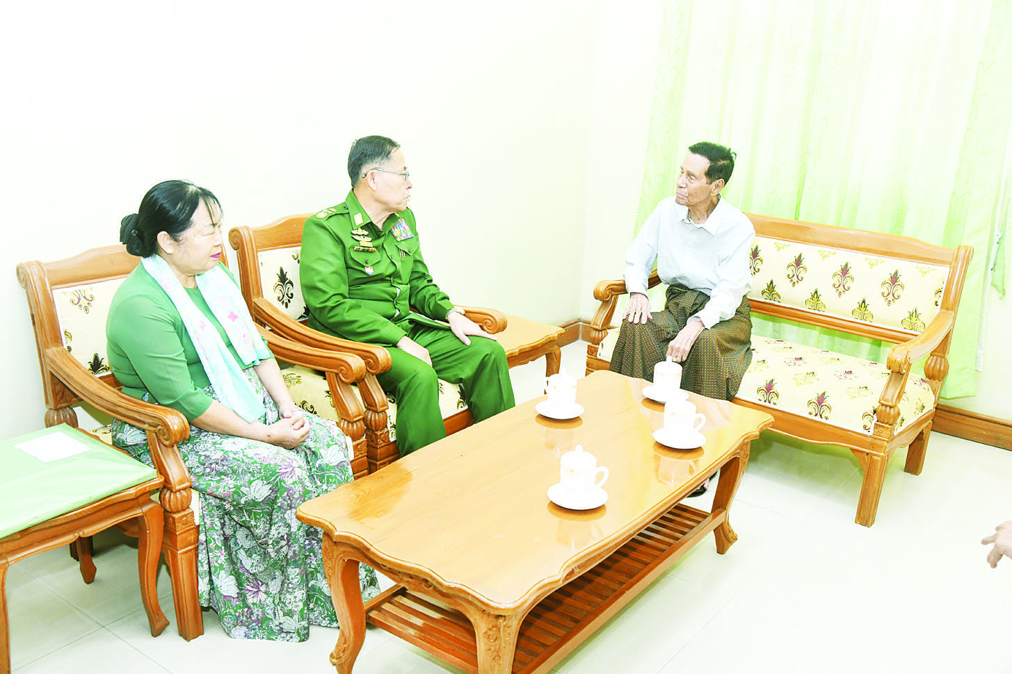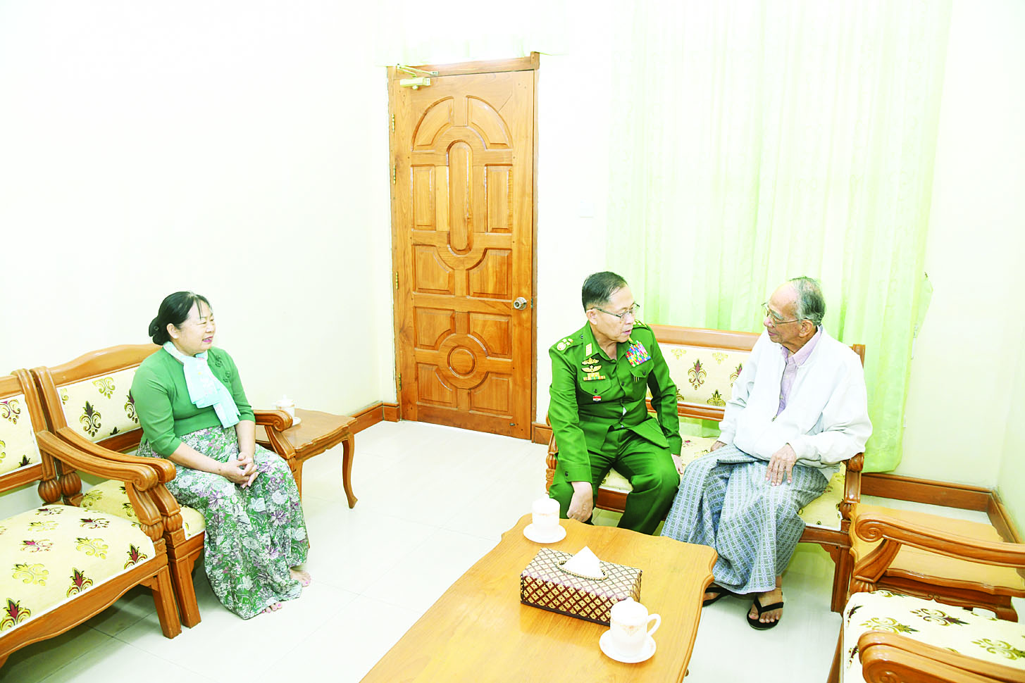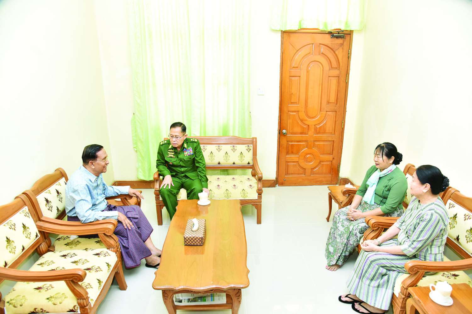 နိုင်ငံတော်လုံခြုံရေးနှင့်အေးချမ်းသာယာရေးကော်မရှင်ဒုတိယဥက္ကဋ္ဌ ဒုတိယတပ်မတော်ကာကွယ်ရေးဦးစီးချုပ် ဒုတိယဗိုလ်ချုပ်မှူးကြီး စိုးဝင်းနှင့်ဇနီး (၈၁) နှစ်မြောက် တပ်မတော်နေ့အခမ်းအနားသို့ တက်ရောက်ကြမည့်   အငြိမ်းစားတပ်မတော်အရာရှိကြီးများနှင့် ဇနီးများအား သွားရောက်တွေ့ဆုံ ဂါရဝပြုနှုတ်ဆက်