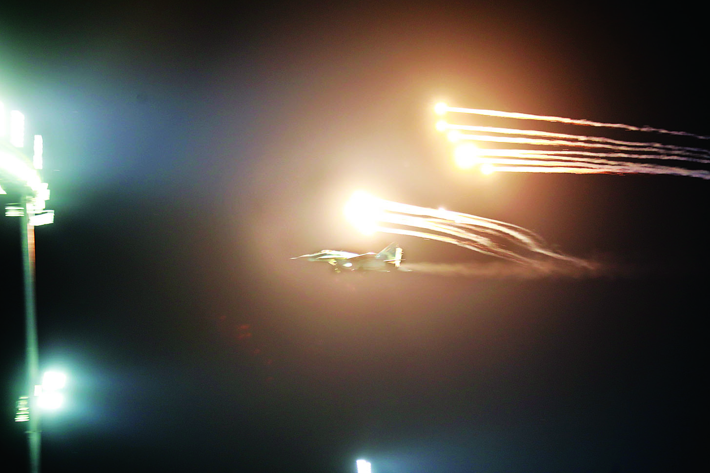 ထိုသို့ နိုင်ငံတော်လုံခြုံရေးနှင့် အေးချမ်းသာယာရေးကော်မရှင်ဥက္ကဋ္ဌ တပ်မတော်ကာကွယ်ရေးဦးစီးချုပ် စစ်ရေးပြကွင်းသို့ ရောက်ရှိစဉ် MiG-29 ဘက်စုံသုံး တိုက်လေယာဉ် ၁ စီးက ရှုရပ်ရှေ့တည့်တည့်မှ မီးကျည်များထုတ်လွှတ်၍ အလေးပြုပျံသန်း သည်။