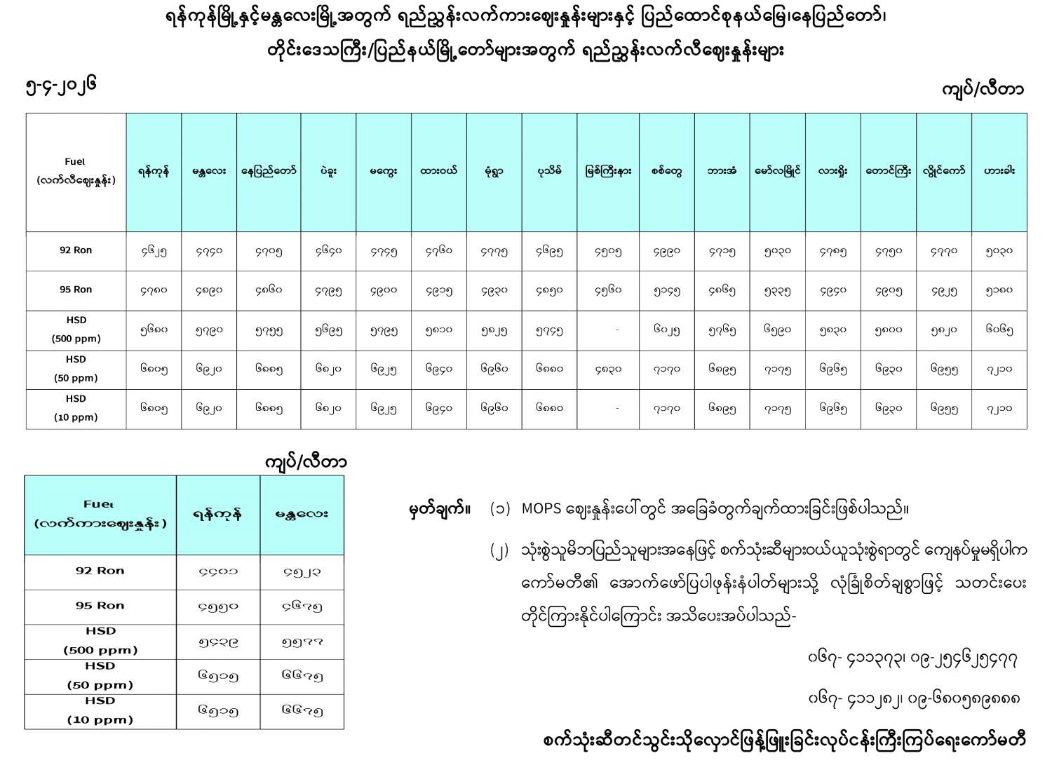 ရန်ကုန်မြို့နှင့် မန္တလေးမြို့အတွက် ရည်ညွှန်းလက်ကားဈေးနှုန်းများနှင့် ပြည်ထောင်စုနယ်မြေ နေပြည်တော်၊ တိုင်းဒေသကြီး/ ပြည်နယ် မြို့တော်များအတွက် ရည်ညွှန်းလက်လီဈေးနှုန်းများ 04/05/2026