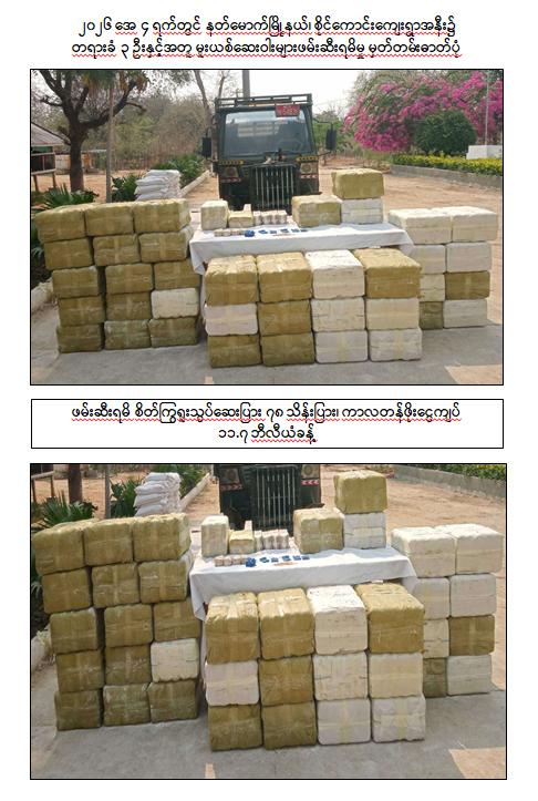 နိုင်ငံတော်အစိုးရအနေဖြင့် အနာဂတ်မျိုးဆက်သစ်လူငယ်များအပါအဝင် လူသားမျိုးနွယ်စုတစ်ခုလုံးအား အန္တရာယ်ဖြစ်စေသည့် မူးယစ်ဆေးဝါးသယ်ဆောင်ရောင်းဝယ်မှုများအား ထိရောက်စွာ တားဆီးကာကွယ်တိုက်ဖျက်ရေးကို အမျိုးသားရေးတာဝန်တစ်ရပ်အဖြစ် သတ်မှတ်၍ အရှိန်အဟုန်မြှင့် ဆောင်ရွက်လျက်ရှိသည်။ ထို့ပြင် မူးယစ်ဆေးဝါးသယ်ဆောင်လေ့ရှိသည့် လမ်းကြောင်းများ၌ စစ်ဆေးရှာဖွေဖော်ထုတ်ဖမ်းဆီးမှုများ တိုးမြှင့်လုပ်ဆောင်နေသကဲ့သို့ အိမ်နီးချင်းနိုင်ငံများနှင့်ပူးပေါင်း၍ မူးယစ်ဆေးဝါးတားဆီးနှိမ်နင်းရေး ပူးတွဲစစ်ဆင်ရေးများကို ဆောင်ရွက်ခြင်းများကြောင့် မူးယစ်ဆေးဝါး သယ်ဆောင်ရောင်း/ဝယ်သူများသည် စစ်ဆေးရေးဂိတ်များအား ရှောင်ကွင်းသည့် လမ်းကြောင်းများအား ပြောင်းလဲအသုံးပြုလာသည်ကို တွေ့ရှိရသည်။