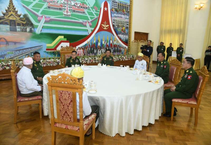 (၈၁) နှစ်မြောက် တပ်မတော်နေ့စစ်ရေးပြအခမ်းအနားသို့ တက်ရောက်ကြမည့် လွတ်လပ်ရေးမော်ကွန်းဝင်ပုဂ္ဂိုလ် ဒုတိယအဆင့် ၁ ဦးနှင့် တတိယအဆင့် ၂ ဦး စုစုပေါင်း ၃ ဦးတို့အား နိုင်ငံတော်လုံခြုံရေးနှင့် အေးချမ်းသာယာရေးကော်မရှင် ဒုတိယဥက္ကဋ္ဌ ဒုတိယတပ်မတော်ကာကွယ်ရေးဦးစီးချုပ် ဒုတိယဗိုလ်ချုပ်မှူးကြီး စိုးဝင်းက ယနေ့ နံနက်ပိုင်းတွင် နေပြည်တော်ရှိ ဘုရင့်နောင်ရိပ်သာ ဧည့်ခန်းမဆောင်၌ လက်ဘက်ရည်ဝိုင်းဖြင့် တည်ခင်းဧည့်ခံ၍ ဂါရဝပြုတွေ့ဆုံသည်။