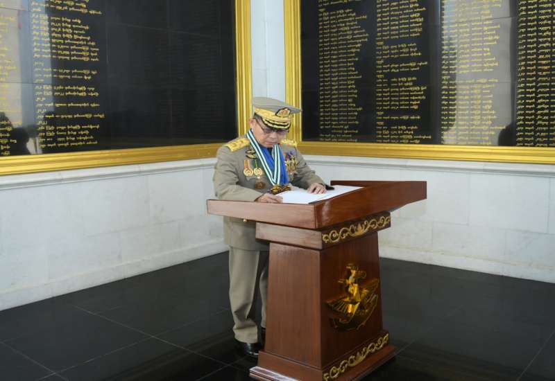 ယနေ့တွင် ကျရောက်သည့် (၈၁) နှစ်မြောက် တပ်မတော်နေ့ အထိမ်းအမှတ်အဖြစ် ယနေ့နံနက်ပိုင်းတွင် သူရဲကောင်းဗိမာန် (နေပြည်တော်) ၌ ဂုဏ်ပြုပန်းခြင်းချ အလေးပြုခြင်းအခမ်းအနားကို ကျင်းပပြုလုပ်ရာ နိုင်ငံတော်လုံခြုံရေးနှင့် အေးချမ်းသာယာရေးကော်မရှင်ဥက္ကဋ္ဌ တပ်မတော်ကာကွယ်ရေးဦးစီးချုပ် ဗိုလ်ချုပ်မှူးကြီး သတိုးမဟာသရေစည်သူ သတိုးသီရိသုဓမ္မ မင်းအောင်လှိုင်ကိုယ်စား နိုင်ငံတော်လုံခြုံရေးနှင့် အေးချမ်းသာယာရေးကော်မရှင် ဒုတိယဥက္ကဋ္ဌ ဒုတိယတပ်မတော်ကာကွယ်ရေးဦးစီးချုပ် ဒုတိယဗိုလ်ချုပ်မှူးကြီး သီရိပျံချီမဟာသရေစည်သူ စိုးဝင်းတက်ရောက်၍ ဂုဏ်ပြုပန်းခြင်းချအလေးပြုသည်။