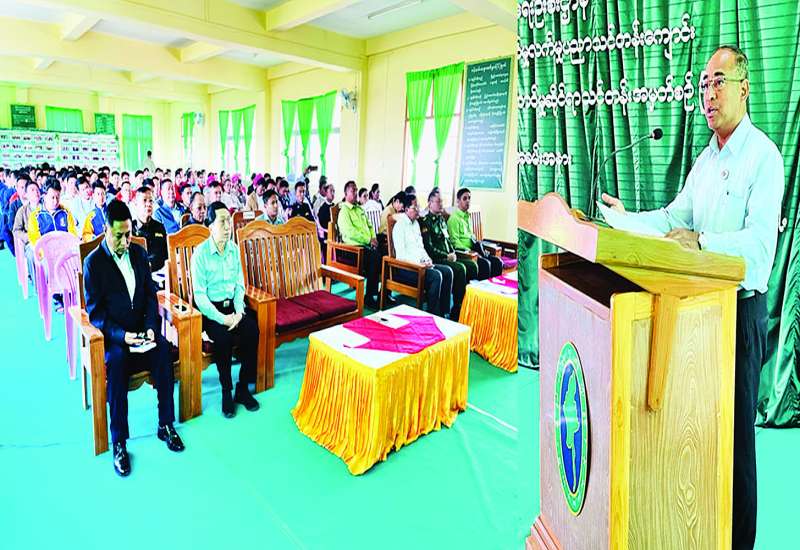 နယ်စပ်ရေးရာဝန်ကြီးဌာန ပညာရေးနှင့် လေ့ကျင့်ရေးဦးစီးဌာန ကွပ်ကဲမှုအောက်ရှိ နယ်စပ်ဒေသတိုင်းရင်းသားလူငယ်များ စက်မှုလက်မှုပညာ သင်တန်းကျောင်းသုံးကျောင်းနှင့် အမျိုးသမီးအိမ်တွင်းမှု သက်မွေးလုပ်ငန်း ပညာသင်တန်းကျောင်း ၁၃ ကျောင်းတို့၌ သက်မွေးဝမ်းကျောင်းသင်တန်းများ ဖွင့်လှစ်ခဲ့ရာ စက်မှုကျောင်းများတွင် ဆောက်လုပ်ရေးသင်တန်း၊ လျှပ်စစ်သင်တန်း၊ ဂဟေသင်တန်း၊ မော်တော်ယာဉ်စက်ပြင်သင်တန်း၊ လက်ကိုင်ဖုန်း ပြင်သင်တန်း၊ ဟိုတယ်ဝန်ဆောင်မှု ဆိုင်ရာသင်တန်းများ၊ အိမ်တွင်းမှု သင်တန်းကျောင်းများတွင် အဆင့်မြင့်အိမ်တွင်းမှု စက်ချုပ်သင်တန်းနှင့် ဟိုတယ်ဝန်ဆောင်မှုဆိုင်ရာသင်တန်းများ၏ သင်တန်းဆင်းပွဲများအား ယနေ့နံနက်ပိုင်းတွင်ကျင်းပခဲ့ရာ အောင်ပန်းမြို့ စက်မှုသင်တန်းကျောင်း၌ ရှမ်းပြည်နယ်ဝန်ကြီးချုပ် ဦးအောင်အောင် တက်ရောက်သင်တန်းဆင်း အမှာစကားပြောကြားသည်။